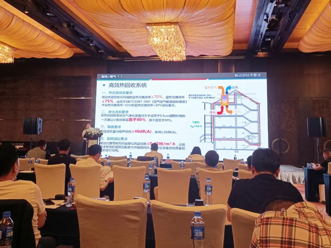 在技術(shù)分享環(huán)節(jié)上,愛(ài)美信副總經(jīng)理兼研發(fā)總監(jiān)朱建榮在大會(huì)上發(fā)表了《新風(fēng)系統(tǒng)在被動(dòng)房領(lǐng)域的發(fā)展與應(yīng)用》主題演講,從被動(dòng)房在中國(guó)的發(fā)展歷史和前景開(kāi)始,持續(xù)輸出干貨,詳細(xì)解讀了被動(dòng)房的建筑技術(shù)標(biāo)準(zhǔn)及被動(dòng)房新風(fēng)系統(tǒng)技術(shù)解決方案。