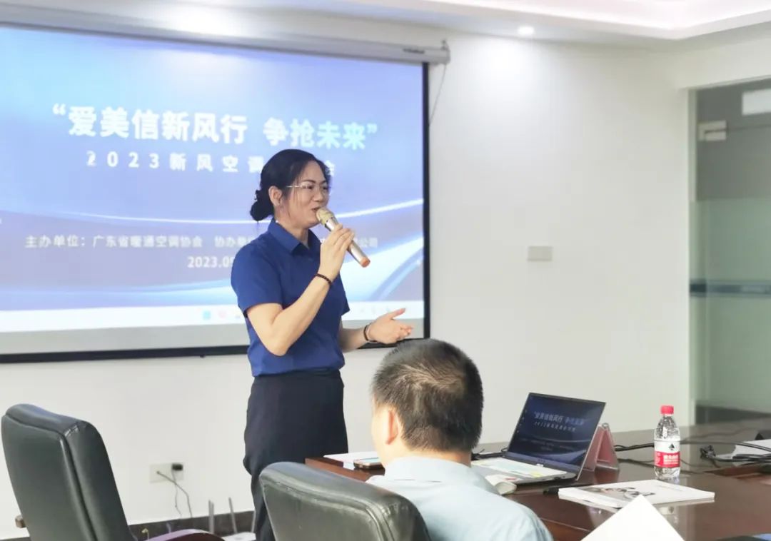 彭暉暉經理向今天的來賓介紹了愛美信的發展歷程、產品系列、品牌優勢以及今后的發展規劃,詳細解讀了愛美信的空氣整體解決方案、一站式采購安裝、多元化產品;并對未來發展模式、品牌縱深發展等方面作了精準分析。