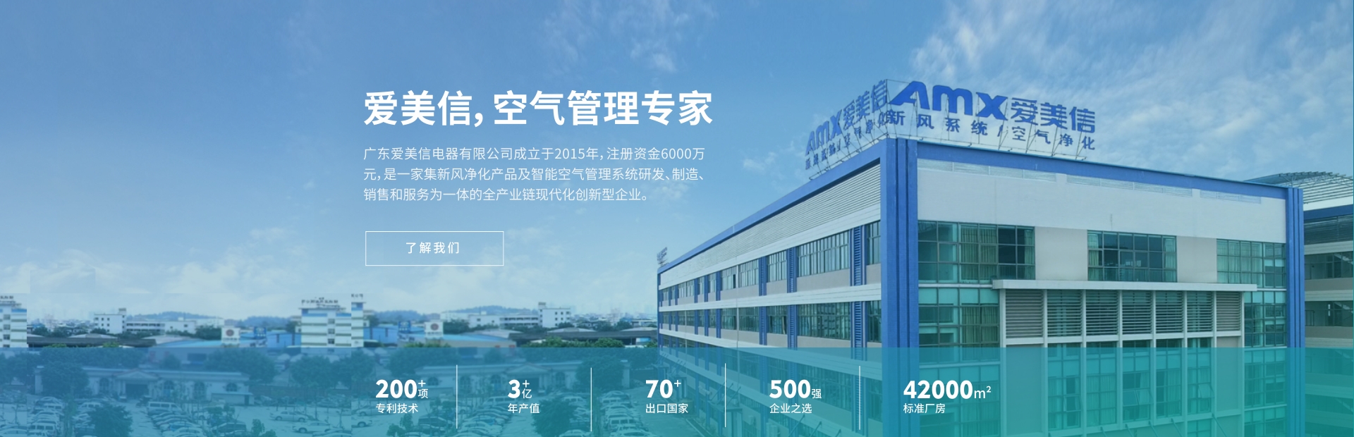 公司總部設在佛山市南海區獅山新城工業區,建設了智能環境系統的研發和生產基地。公司遵循"節能低碳、綠色環保"的發展理念,將嚴謹低調的品牌價值觀融入到技術研發、產品設計、產品制造、系統集成、質量檢測以及產品安裝的整個生產流程中。愛美信新風系統產品重點應用于商業建筑和家庭住宅等領域。